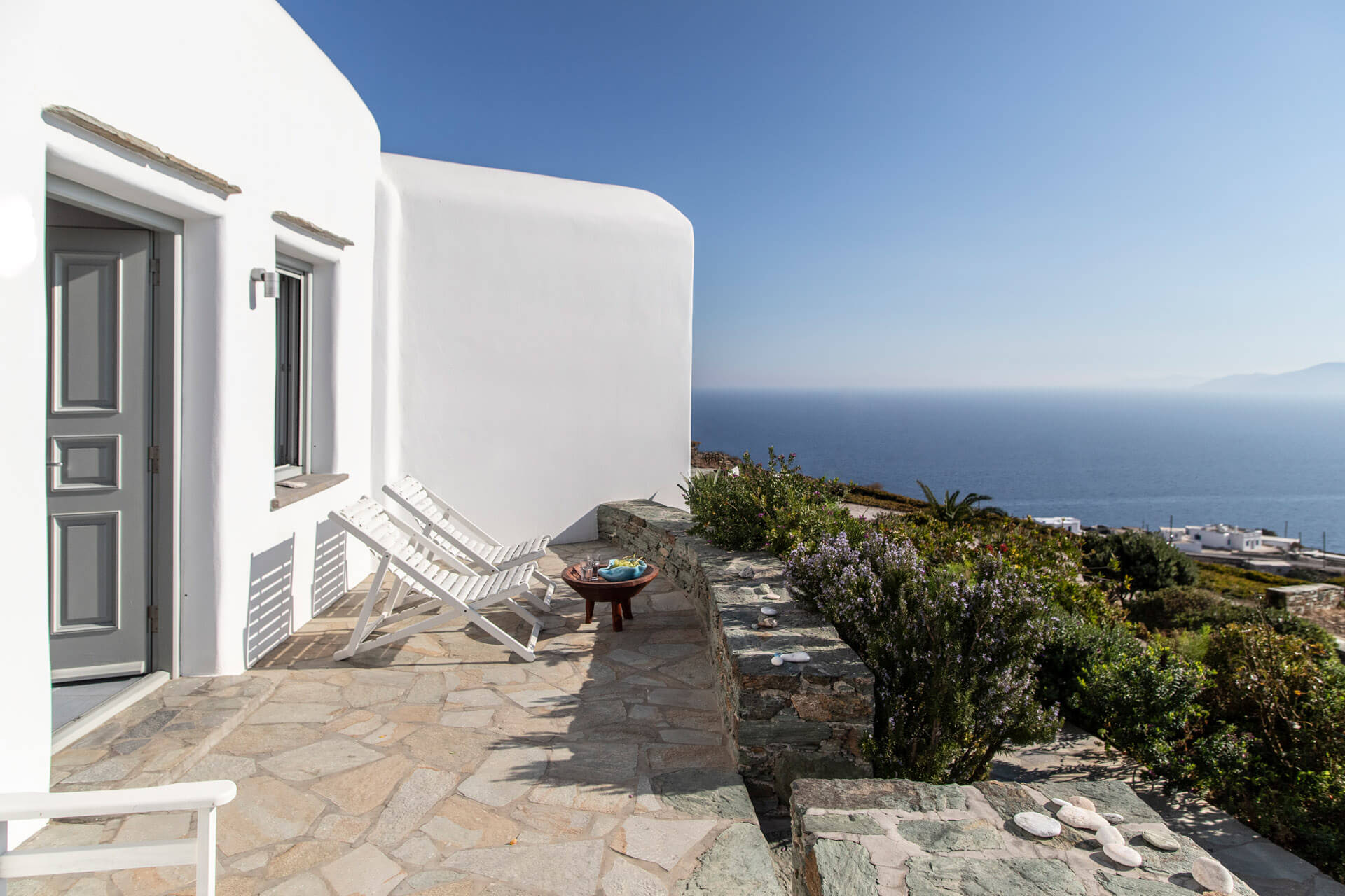 With the dramatic cliffs and calm waters of the Aegean as a backdrop, this large open-plan suite is in constant communication with the natural beauty that surrounds it. With interiors done up in light, airy tones, endless views from its private terrace and a spacious feeling of serenity inside, Dendro is highly recommended for families.